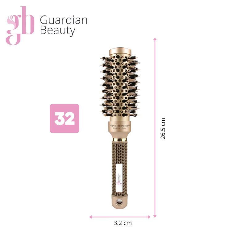 Guardian Beauty Ronde Föhnborstel | Keramische en ionische technologie | Ronde 32mm | Zwijnenharen voor Föhnen, Stylen, Krullen en Extra Volume