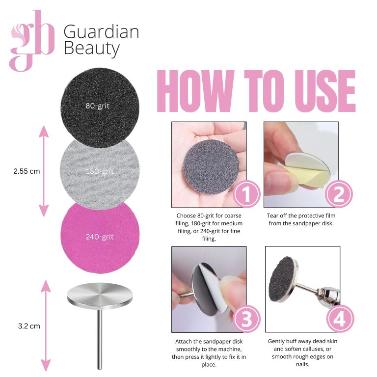 De schuurpapier schijven zijn gemaakt van duurzaam, hoogwaardig schuurmateriaal dat effectief schuurt zonder de huid te beschadigen. Dankzij de stevige grip en eenvoudige bevestiging wissel je moeiteloos tussen verschillende korrelgroottes — ideaal voor elke stap van je manicure of pedicure.