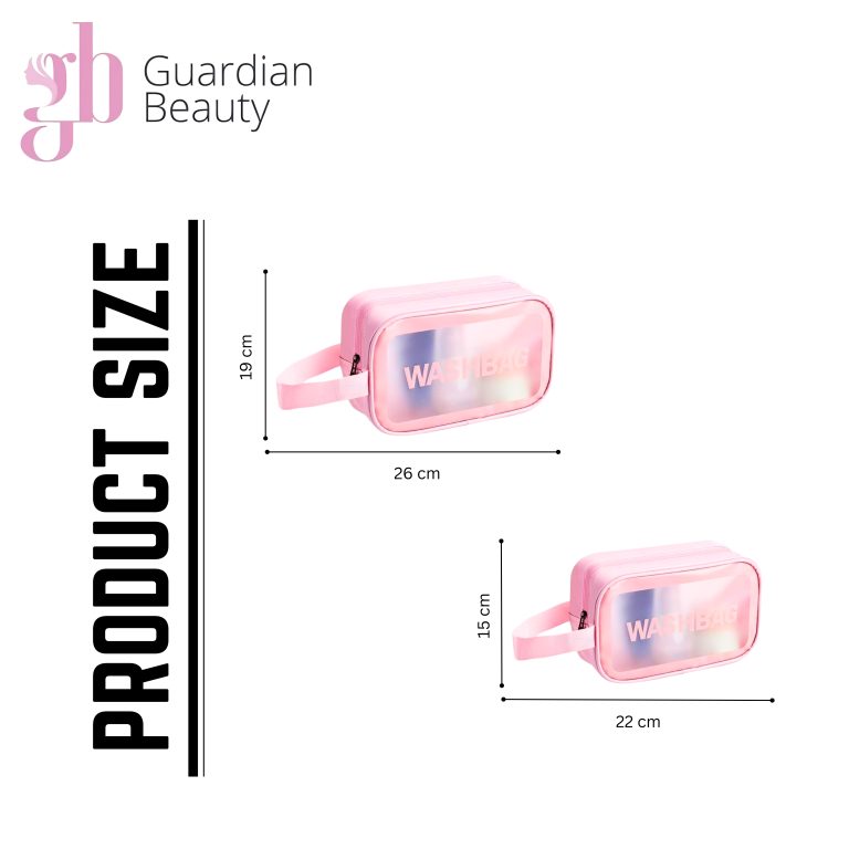 Guardian Beauty Toilettas – Waszak – Doorzichtig – Waterdicht – Make-up Reistas – Cosmetische Tas – Set Van 2 – Roze