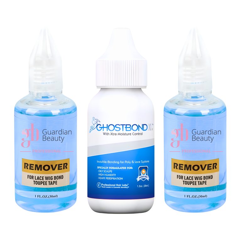 GhostBondXL Pruik Lijm & Guardian Beauty Remover Set – Extra Moisture Control – Invisible Bonding for Poly and Lace Systems – 38ml + GB Remover – Blauw – For Lace Wig Bond and Toupee Tape – 30ml – Haarextensions