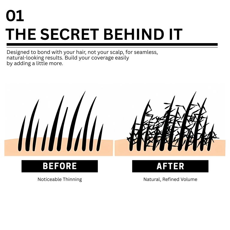 • Camoufleert haaruitval en dunner wordend haar in seconden